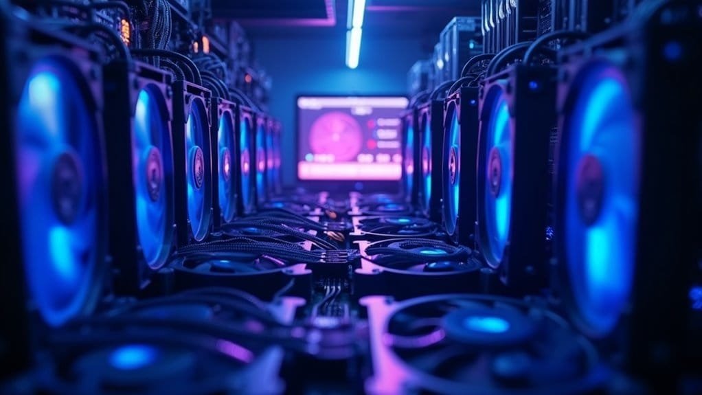 While the correct hardware forms your mining rig’s foundation, its software and network connection dictate its real-world performance. You must choose mining software specifically compatible with your privacy coins, like XMRig for Monero. When you configure this software, input your mining pool address and wallet precisely. Set your threads correctly to maximize hardware performance. For optimizing your setup, ensure a stable connection. Use a wired connection to minimize network latency, which is critical for consistently earning rewards. Always update to the latest version of your software to maintain security and efficiency. Joining a pool is essential; solo mining these coins is often impractical due to their high network difficulty. Additionally, choose mining software that supports adaptive load management based on network conditions.