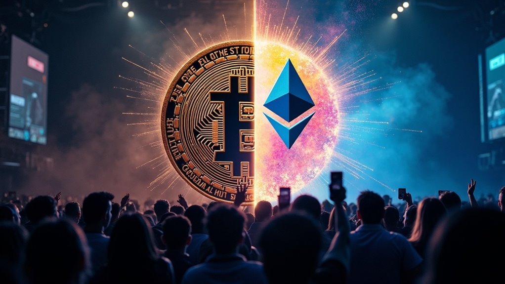 While scaling Bitcoin requires a nearly impossible consensus to alter its proven base layer, Ethereum’s approach has evolved into a multi-layered architecture where the mainnet secures a network of faster, cheaper Layer 2 blockchains. You see Bitcoin prioritizing Layer 1 security above all else. Ethereum’s layered scaling strategy, however, intentionally delegates transaction efficiency to secondary networks like rollups. This grants Ethereum superior protocol flexibility, allowing it to adopt upgrades like Dencun’s blobs without compromising its foundational security. The result is safer ecosystem expansion, where applications build on specialized L2s while inheriting the mainnet’s robust settlement guarantees. Your exposure to innovation happens away from the core chain, preserving its integrity. Moreover, Ethereum’s commitment to Optimistic Rollups and ZK-Rollups exemplifies its dedication to enhancing scalability and transaction throughput.