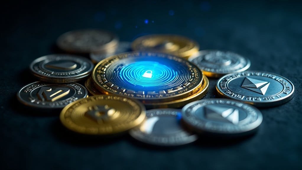 As you explore privacy coins, you’ll encounter distinct technologies—each offering a different approach to obscuring your transaction data on the blockchain. You might use Monero for its mandatory privacy, combining ring signatures and stealth addresses to make every transaction private by default. For selective anonymity, Zcash employs zero-knowledge proofs called zk-SNARKs to validate a transaction without revealing its details. Dash’s CoinJoin protocol mixes payments, while networks like Pirate Chain enforce full privacy with zk-SNARKs. Your choice hinges on the safety model you trust—built-in obfuscation or optional, cryptographic proofs—to secure your financial footprint. This emphasis on anonymity provides high security and censorship resistance for users, despite creating challenges for regulatory compliance.