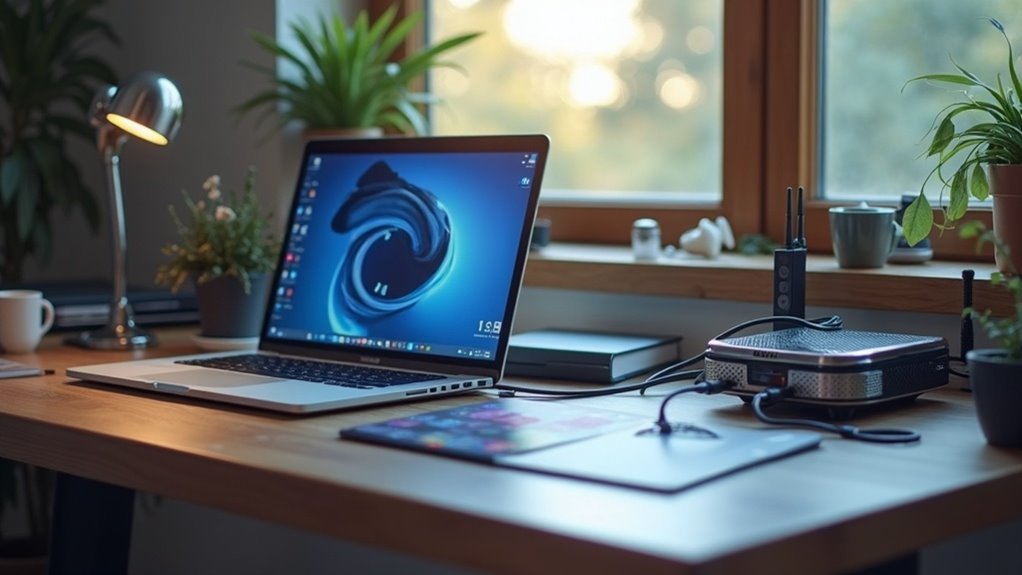 Your validator must stay online consistently. Downtime penalties occur when you’re offline, and network connectivity is non-negotiable. A 10+ Mbps connection handles validator duties reliably. Additionally, ensuring enhanced transaction validation is crucial for maintaining the integrity of your staking operations. Storage speed matters more than capacity—NVMe SSDs execute state reads and writes faster than SATA drives, improving staking performance. Redundant power supplies prevent outages. Many operators add Uninterruptible Power Supplies (UPS) to bridge network interruptions.